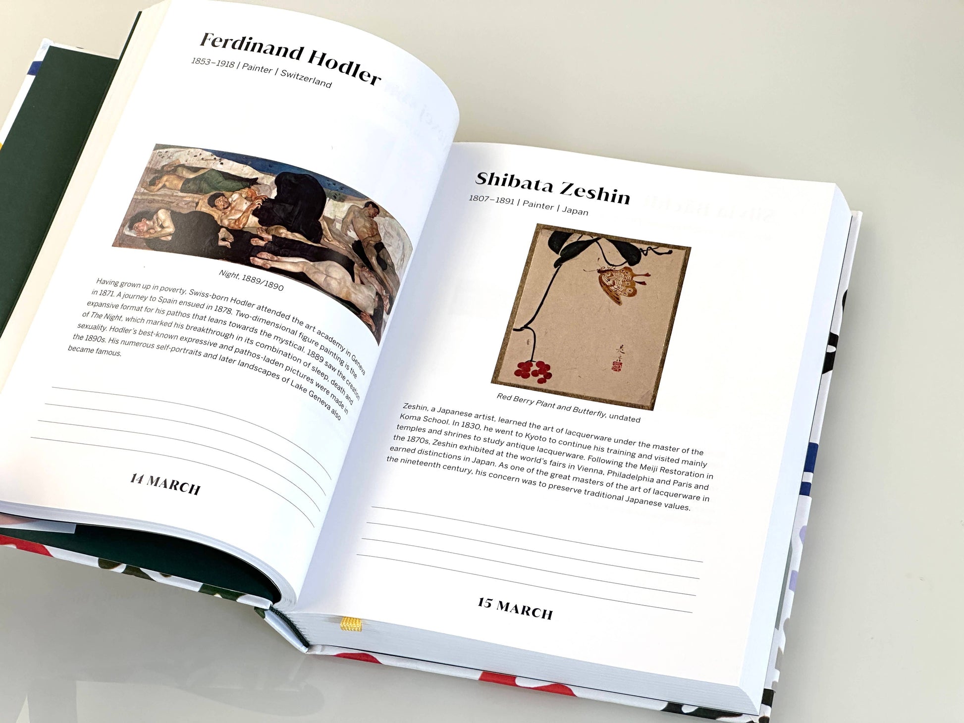 Spanning continents, cultures, and centuries, this collection highlights painters, sculptors, photographers, and multimedia artists from every corner of the globe. The book honors voices often left out of traditional art histories, showcasing women, artists of color, and contemporary visionaries. Every page offers a chance to engage with a different creative legacy — from ancient China and Renaissance Italy to modern-day America and Japan — making each day an invitation to explore the world’s vast artistic diversity.