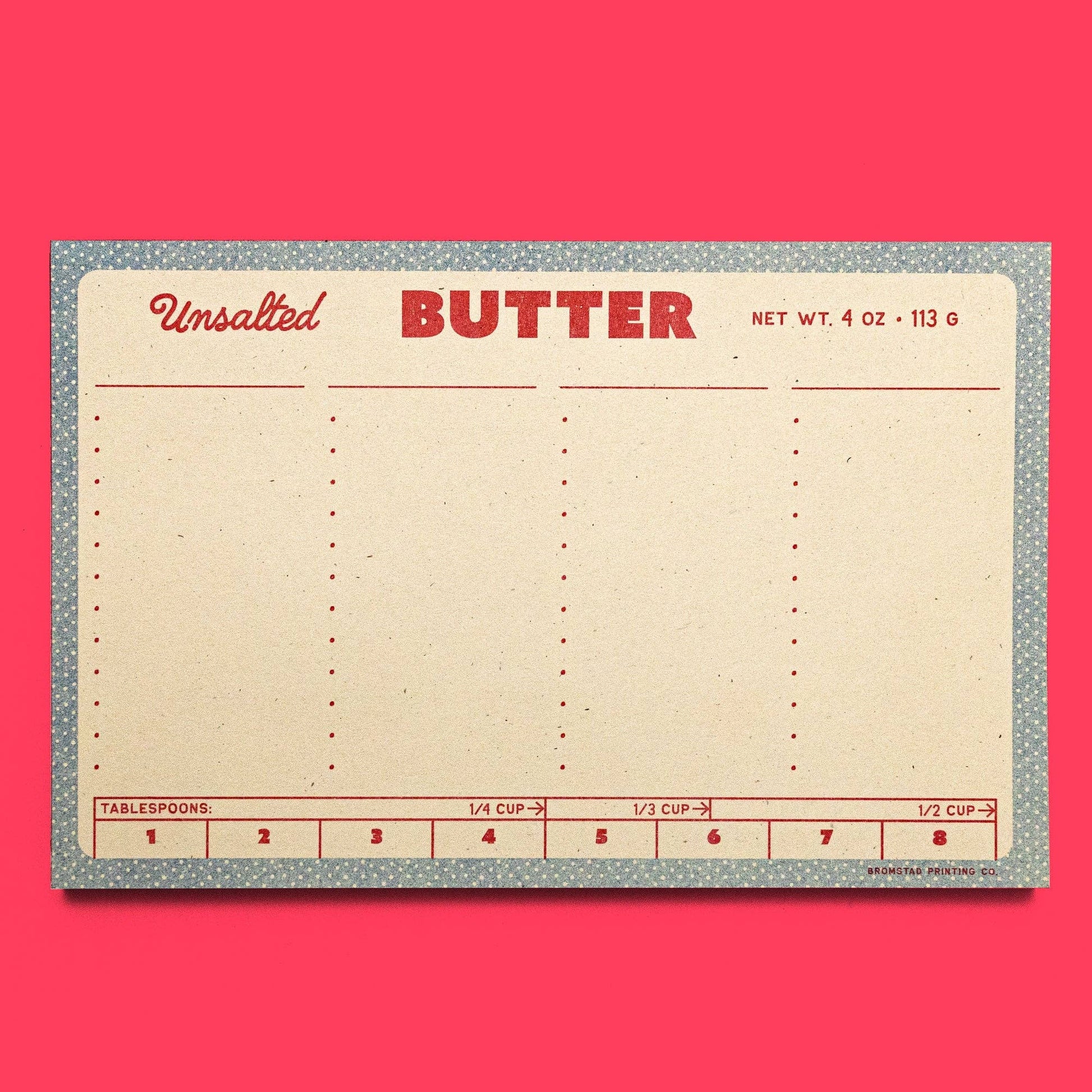 The perfect market list doesn't ex— Oh wait no it is this butter notepad! Four columns where you can fill in your own custom headers and above bulleted spaces to list items to make your next trip to the grocery store smooth as butter.