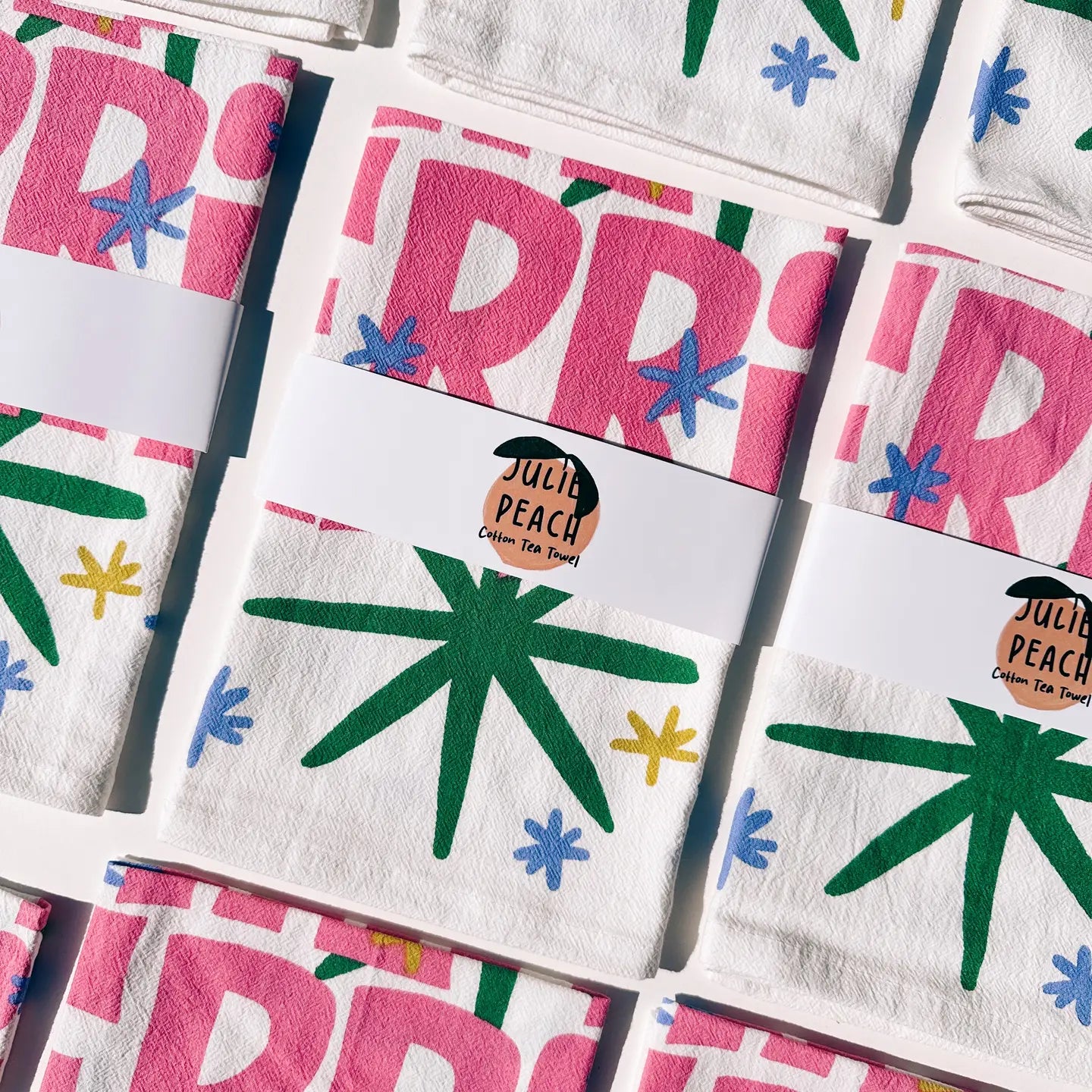 Julie Peach utilizes traditional block printing techniques to create playful illustrations that she hopes will make you smile. She believes products should make you feel good and leave the earth feeling good too, which is why she work with Denver's ONLY Green-Certified print shop for the silkscreened tea towels.