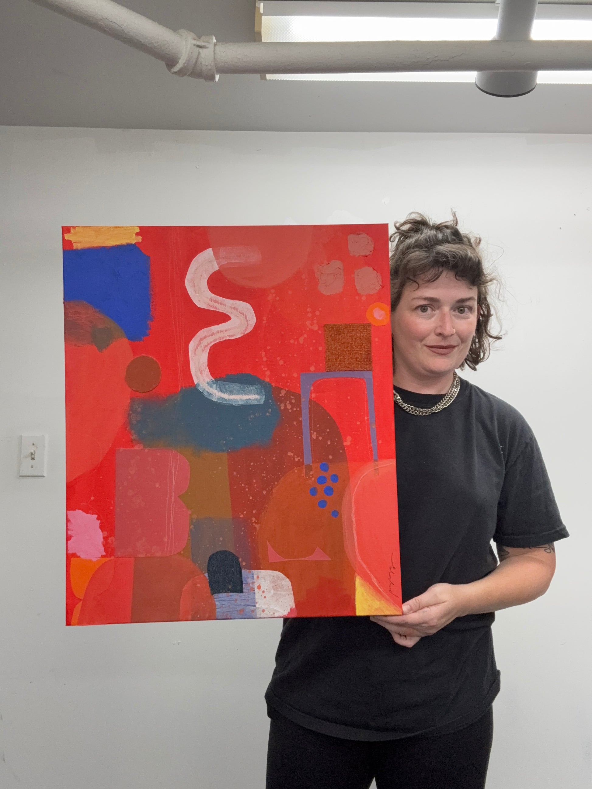 Last year, my husband took me to the Illinois Railway Museum on a whim. We stayed for hours because I was enamored with the trains, especially the vibrant, beautiful colors that decorated once ordinary streetcars and locomotives. I took picture after picture, hoping to capture the energy of these massive machines that were now permanently parked in barns or on outdoor tracks. My photos didn’t do these beauties justice, but I was so inspired that I decided to make an entire series of paintings loosely based onthe trains I saw that day.