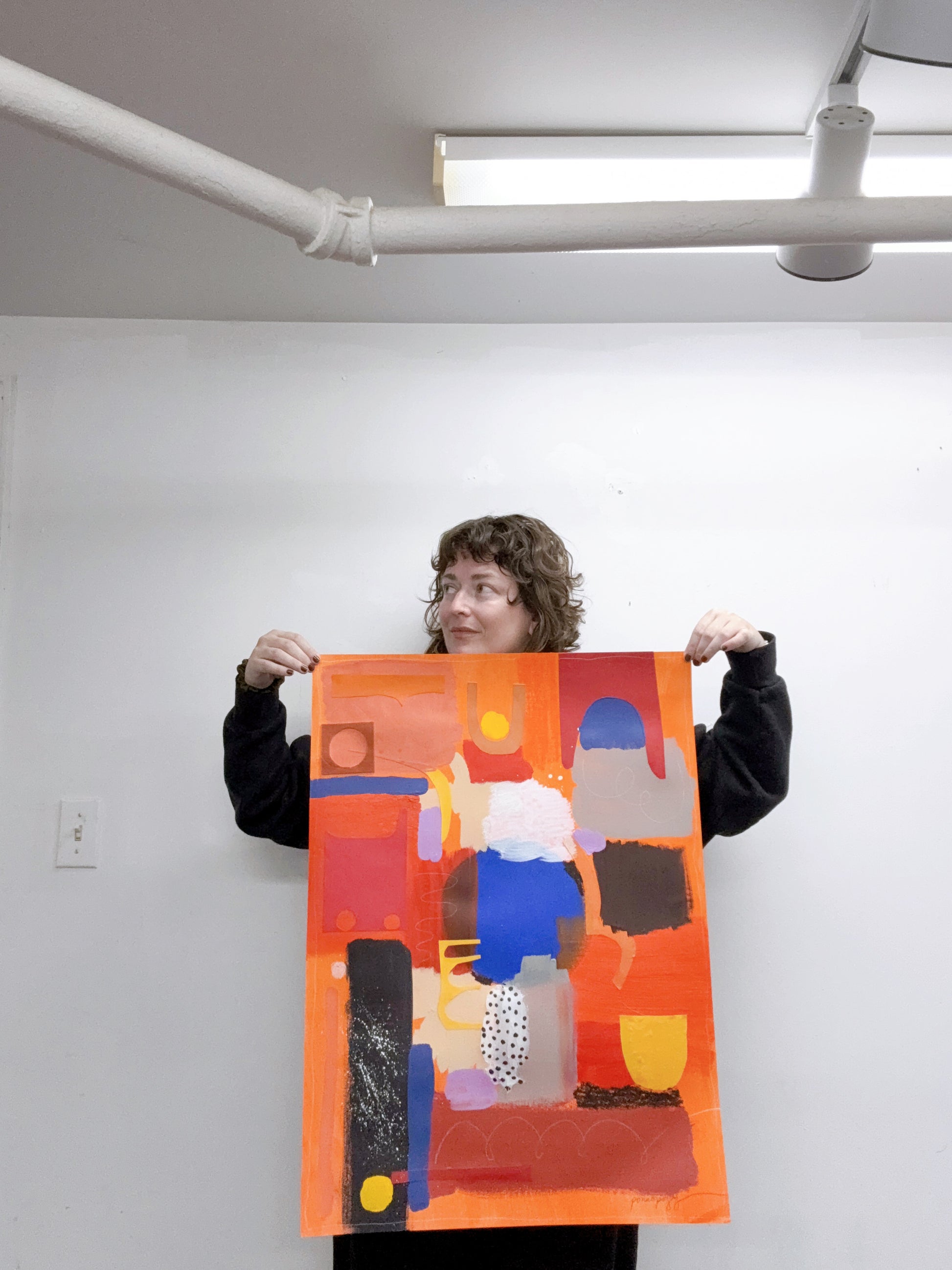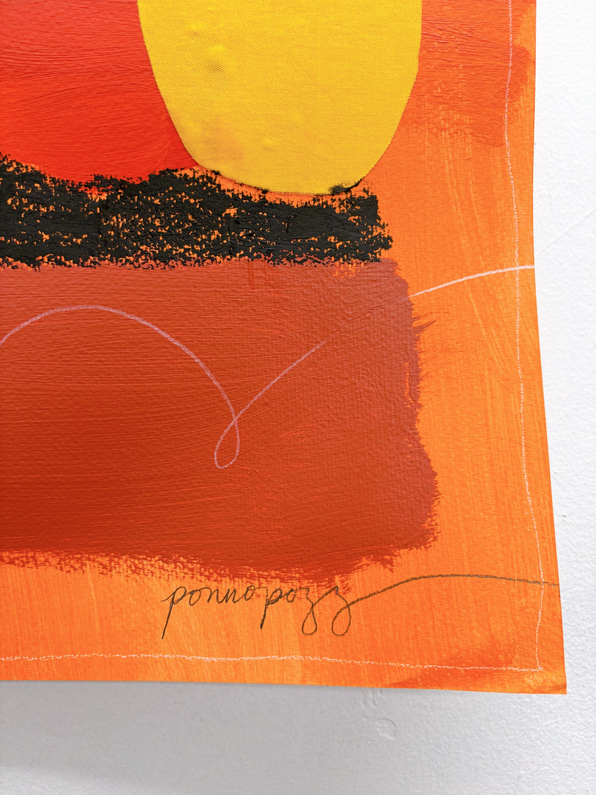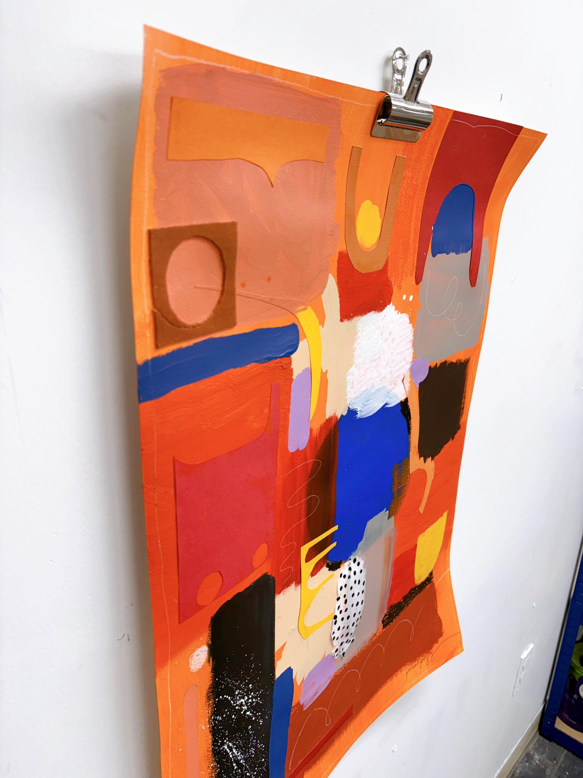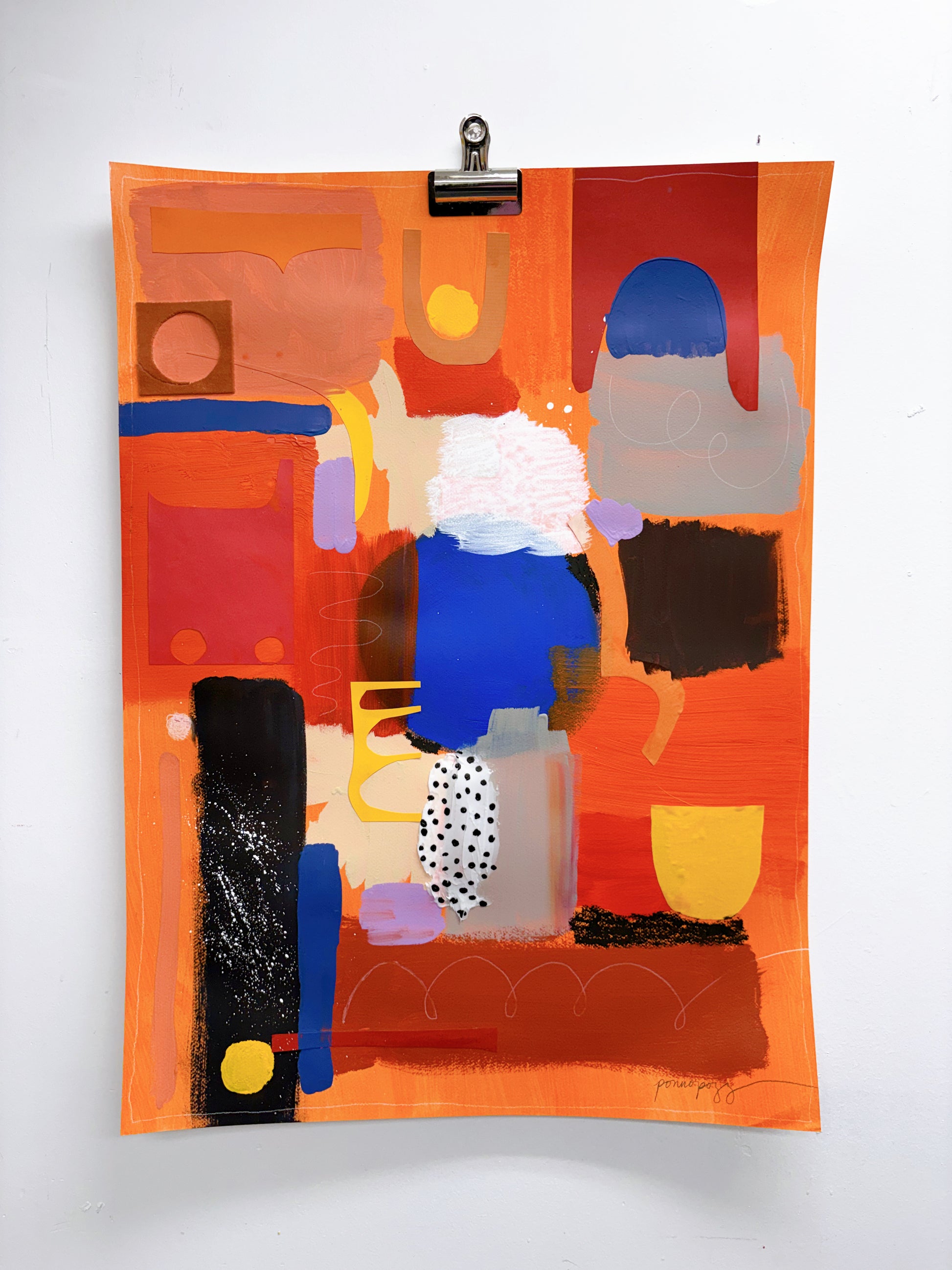 "South Shore Line" is an original, mixed media painting created by Adrianne Hawthorne Thomas (Ponnopozz) in 2025. The painting was created with acrylic, gouache, oil pastel, colored pencil and collage. The piece is signed in the lower right corner and comes on watercolor paper.