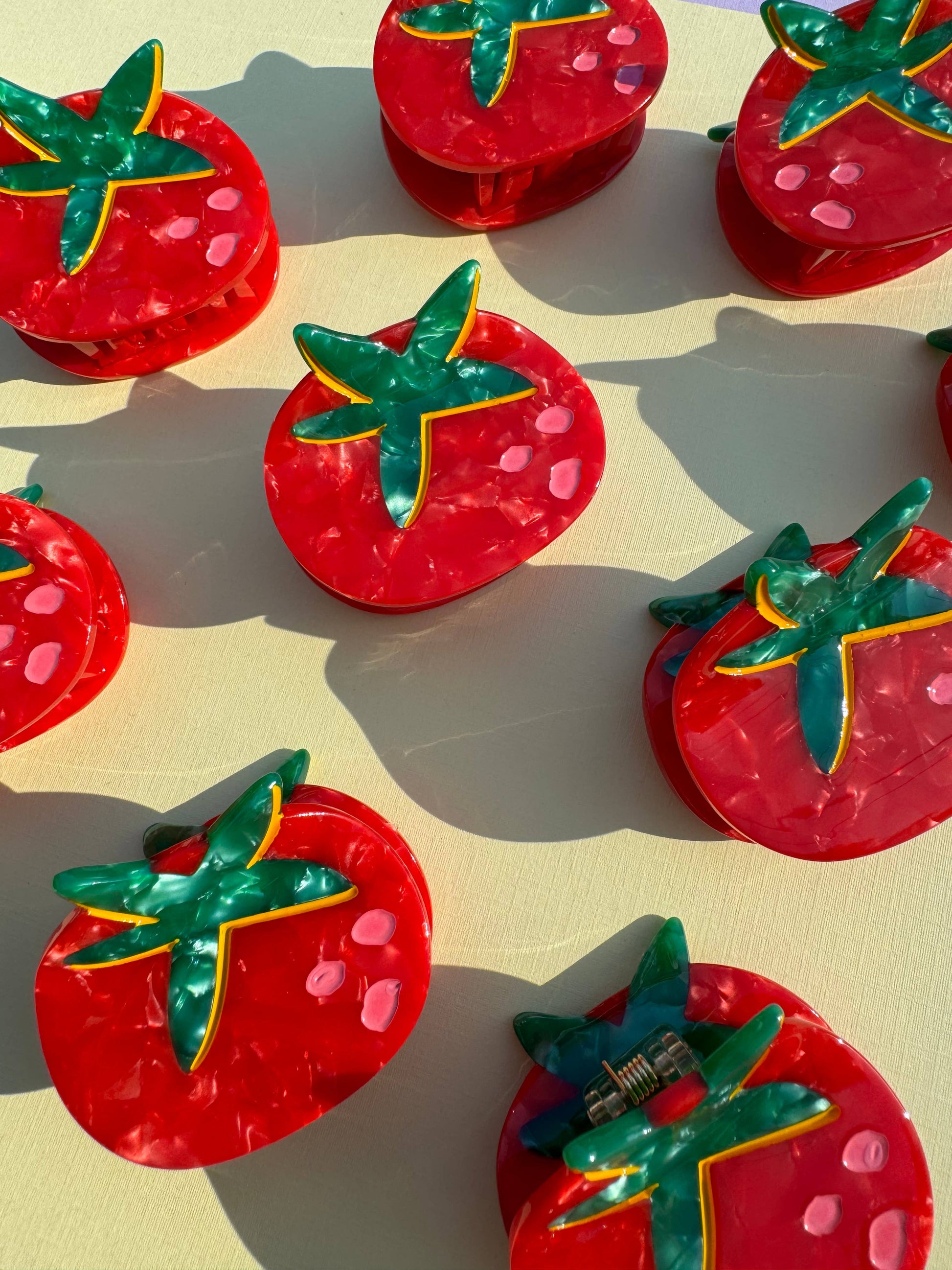 Tomato girlies!! These mini durable hair claws are made from eco-friendly cellulose acetate. They are perfect for adding color to any outfit. They are 1.5 inches long and 1.75 inches wide. These hair clips were produced in China and designed by Not Picasso in Louisville, KY.