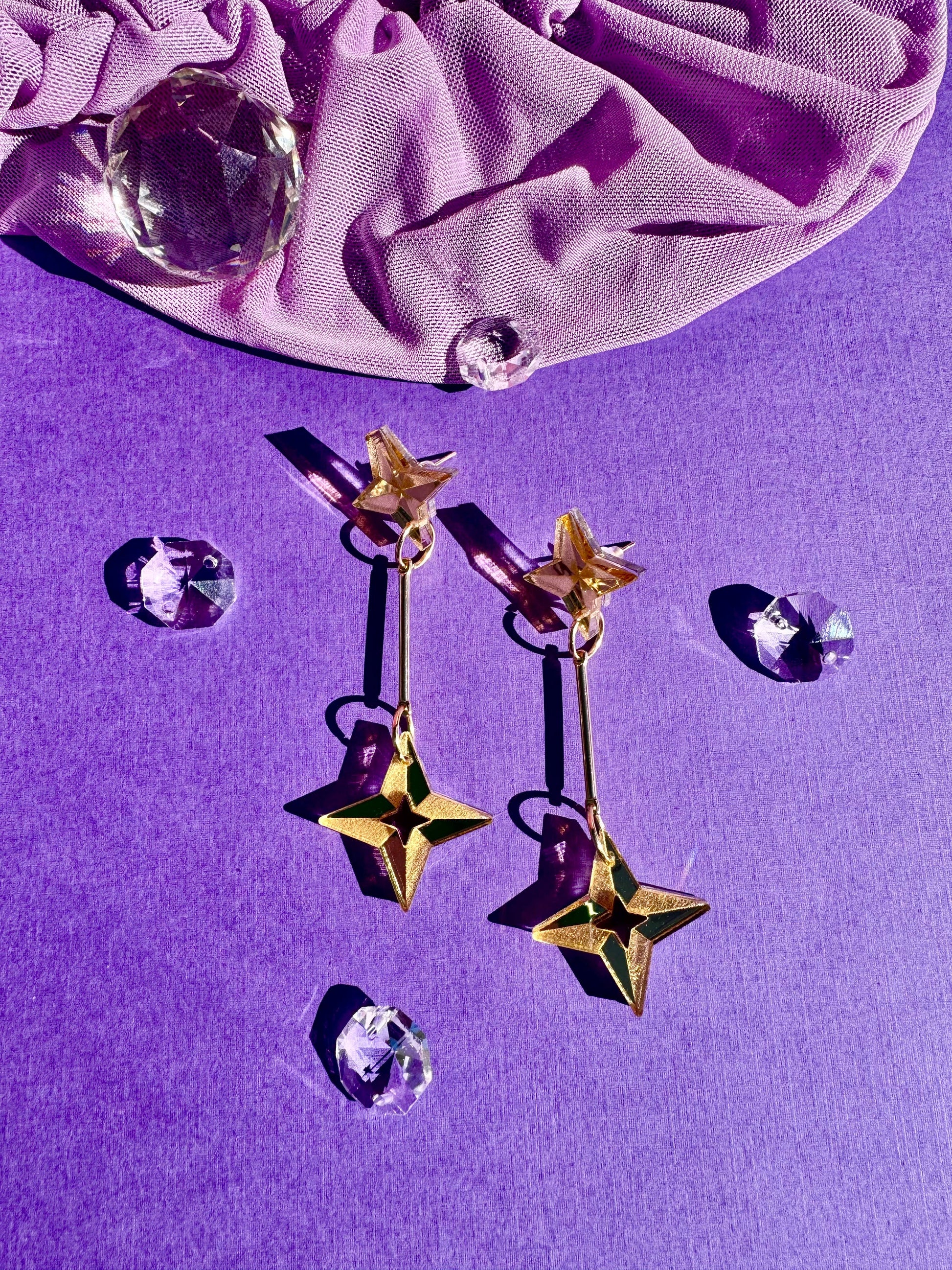 These elegant handmade earrings are perfect for adding a little sparkle to your wardrobe. These laser cut acrylic earrings are hand painted and assembled. Finished with hypoallergenic stainless steel posts, these are safe for most sensitive ears.